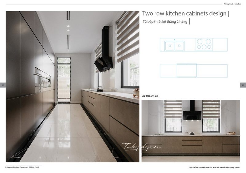 Thiết kế tủ bếp 2 hàng song đôi là một lựa chọn thuận tiện để cung cấp nhiều tiện ích và tiết kiệm diện tích cho các khu vực bếp của các căn nhà, biệt thự.