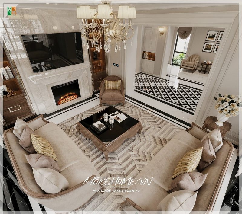 Morehome đã thực hiện việc thi công trực tiếp hình ảnh sản phẩm sofa tân cổ điển bọc vải cao cấp tại phòng khách biệt thự FLC ở Thanh Hóa.