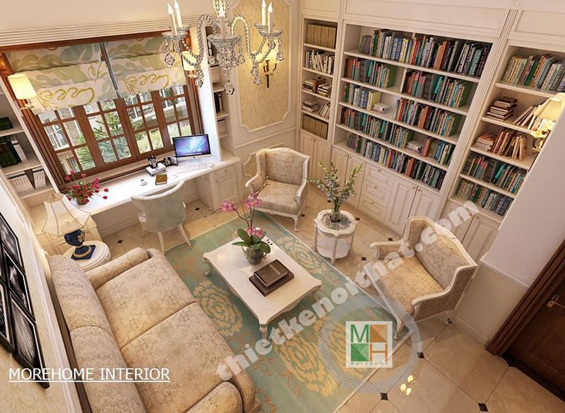 Phòng đọc sách rộng là một không gian dành cho các thành viên trong gia đình để làm việc và thư giãn.