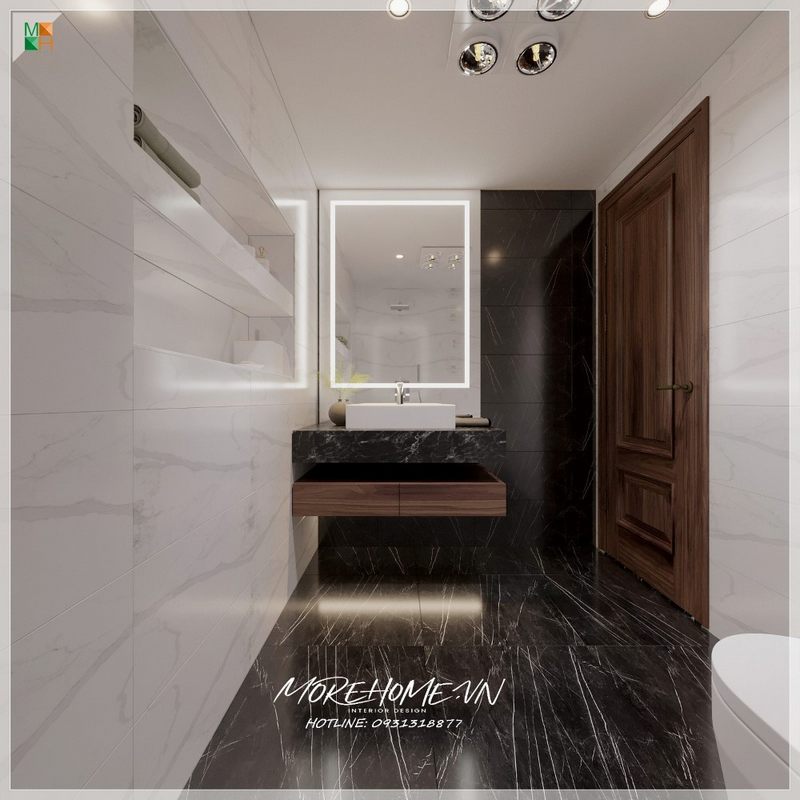 Căn phòng tắm hiện đại với kích thước nhỏ gọn được trang bị đầy đủ tiện nghi dựa trên cách sắp xếp, lựa chọn nội thất, thiết bị vệ sinh và khoa học hợp lí.